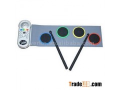 1) Two digital displays 2) 4pcs inductive drums 3) 10 demo songs 4) 32 PCM tones (there are 8 tones for each drum) 5) 30 rhythms 6) 20 combination drums 7) Foldable and easy to carry 8) Compact design Roll-up Drum Pad Kit |